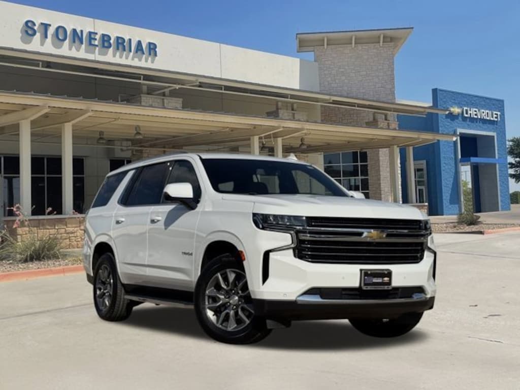 NAVIGATION / Navi / GPS, Gideon/Very Dark Atmosphere Leather, 1st & 2nd Row Color-Keyed Carpeted Floor Mats, 2nd Row Pwr Release 60/40 Split-Folding Bench Seat, 3rd Row 60/40 Power-Folding Split-Bench Seat, Advanced Trailering Package, Auto-Dimming Inside Rear-View Mirror, Automatic Stop/Start, Bose 9-Speaker Stereo Audio System Feature, Bright Front & Rear Door Sill Plates, Color-Keyed Carpeting Floor Covering, Driver & Front Outboard Passenger Airbags, Driver Alert Package, Dual-Pane Power Panoramic Sunroof, Enhanced Driver Information Center, Extra Capacity Cooling System, Floor Console w/Storage Area, Hands-Free Rear Power Programmable Liftgate, HD Surround Vision, Heated 2nd Row Outboard Seats, Heated Steering Wheel, Hitch Guidance w/Hitch View, Infotainment Display, Integrated Trailer Brake Controller, Lane Change Alert w/Side Blind Zone Alert, Leather-Wrapped Steering Wheel, LED Daytime Running Lamps, LT Signature Package, Luxury Package, Max Trailering Package, Memory Settings, Memory Settings for Driver, Navigation System, Outside Heated Power-Adjustable Mirrors, Power Tilt & Telescopic Steering Column, Preferred Equipment Group 1LT, Rear Cross Traffic Alert, Rear Pedestrian Alert, Remote Start, SiriusXM Radio w/360L, Smart Trailer Integration Indicator, Start/Stop System Disable Button, Universal Home Remote, Wireless Charging.Odometer is 4412 miles below market average!Clean CARFAX. CARFAX One-Owner.Summit White 2022 Chevrolet Tahoe LT EcoTec3 5.3L V8 RWDCome visit our State-of -the-Art dealership. Our beautiful facility, service drive, amenities and HUGE selection of New & Pre-Owned vehicles make STONEBRIAR CHEVROLET your premier choice for Chevrolet dealerships in the Dallas/Ft. Worth area. Stop by or give us a call and see how we are MAKING IT EASY!Learn your options for saving time and money, we make your purchase easy at StoneBriar Chevrolet. Call and talk to one of our dedicated Internet Managers today, they have the experience and authority to make your purchase painless and trouble free! Need financing? Call us now! Stonebriar Chevrolet proudly serving the following communities Dallas, Frisco, Plano, Allen, Mckinney, Carrollton, Little Elm, Denton, Ft Worth, Arlington, Richardson,The Colony,Grapevine, Colleyville, Lewisville and Irving.