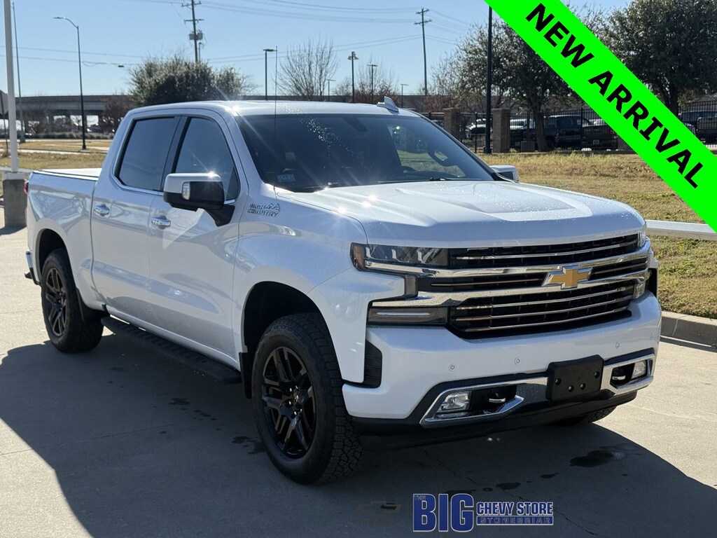 NAVIGATION / Navi / GPS, 8-Speed Automatic, 4WD, Jet Black/Umber Leather, 10-Way Power Driver Seat w/Lumbar, 10-Way Power Passenger Seat Adjuster w/Lumbar, 12-Volt Rear Auxiliary Power Outlet, 120-Volt Bed Mounted Power Outlet, 120-Volt Instrument Panel Power Outlet, 2nd Row Heated Outboard Seats, 4G LTE Wi-Fi Hot Spot Capable, 8 Driver Information Center, Advanced Trailering System, Auto-Dimming Inside Rear-View Mirror, Auxiliary External Transmission Oil Cooler, Bluetooth® For Phone, Chevrolet Connected Access Capable, Chevytec Spray-On Black Bedliner, Chrome Assist Steps, Chrome Grille, Chrome Recovery Hooks, Color-Keyed Carpeting Floor Covering, Compass, Deep-Tinted Glass, Driver Memory, Dual Exhaust w/Polished Outlets, Electric Rear-Window Defogger, Electrical Lock Control Steering Column, Floor Mounted Center Console, Front Carpeted Floor Mats, Front LED Fog Lamps, HD Radio, HD Rear Vision Camera, Heated Driver & Front Outboard Passenger Seats, Heated Steering Wheel, Heavy-Duty Rear Locking Differential, High Capacity Air Filter, Hill Descent Control, Hitch Guidance, Hitch Guidance w/Hitch View, Integrated Trailer Brake Controller, Keyless Open & Start, Lane Change Alert w/Side Blind Zone Alert, Leather Wrapped Steering Wheel, LED Cargo Area Lighting, Manual Tilt/Telescoping Steering Column, Navigation System, Off-Road Suspension, OnStar & Chevrolet Connected Services Capable, Outside Heated Power-Adjustable Mirrors, Painted Mirror Caps, Power Door Locks, Power Front Passenger Windows w/Express Up/Down, Power Front Windows w/Driver Express Up/Down, Power Rear Windows w/Express Down, Power Sliding Rear Window w/Rear Defogger, Preferred Equipment Group 3LZ, Rear Carpeted Floor Mats, Rear Cross Traffic Alert, Rear Dual USB Charging-Only Ports, Rear Wheelhouse Liners, Remote Vehicle Starter System, SiriusXM w/360L, Steering Wheel Audio Controls, Steering Wheel Mounted Electronic Cruise Control, Theft Deterrent System (Unauthorized Entry), Trailering Package, Ultrasonic Front & Rear Park Assist, Universal Home Remote, Up-Level Rear Seat w/Storage Package, Ventilated Driver & Front Passenger Seats, Wireless Charging, Z71 Off-Road Package.Recent Arrival!Clean CARFAX.Pearl 2020 Chevrolet Silverado 1500 High Country EcoTec3 5.3L V8 4WDCome visit our State-of -the-Art dealership. Our beautiful facility, service drive, amenities and HUGE selection of New & Pre-Owned vehicles make STONEBRIAR CHEVROLET your premier choice for Chevrolet dealerships in the Dallas/Ft. Worth area. Stop by or give us a call and see how we are MAKING IT EASY!Learn your options for saving time and money, we make your purchase easy at StoneBriar Chevrolet. Call and talk to one of our dedicated Internet Managers today, they have the experience and authority to make your purchase painless and trouble free! Need financing? Call us now! Stonebriar Chevrolet proudly serving the following communities Dallas, Frisco, Plano, Allen, Mckinney, Carrollton, Little Elm, Denton, Ft Worth, Arlington, Richardson,The Colony,Grapevine, Colleyville, Lewisville and Irving.