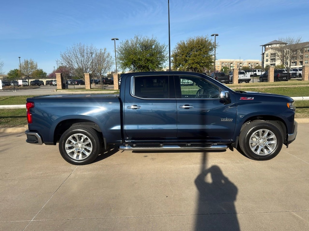 This Northsky Blue Metallic Silverado 1500 LTZ is powered by a robust Ecotec3 5.3L V8 engine paired with an 8-speed automatic transmission, delivering confident performance whether towing heavy loads or navigating challenging terrain with its four-wheel drive and locking limited-slip differential. The crew cab offers spacious leather seating with adjustable lumbar support and memory settings for both driver and passenger, ensuring long drives remain comfortable and personalized. Stay connected and in control with smart device integration, Bluetooth connectivity, WiFi hotspot, and a back-up camera that enhances safety and convenience. The heated steering wheel and mirrors add comfort during colder months, while power folding mirrors and privacy glass provide practicality and style. Advanced safety features like daytime running lights, multiple airbags, stability and traction control, and a tire pressure monitor give peace of mind on every journey. With remote engine start, keyless entry, and an auto-dimming rearview mirror, this Silverado combines everyday ease with rugged capability—perfect for those who work hard and expect more from their truck.