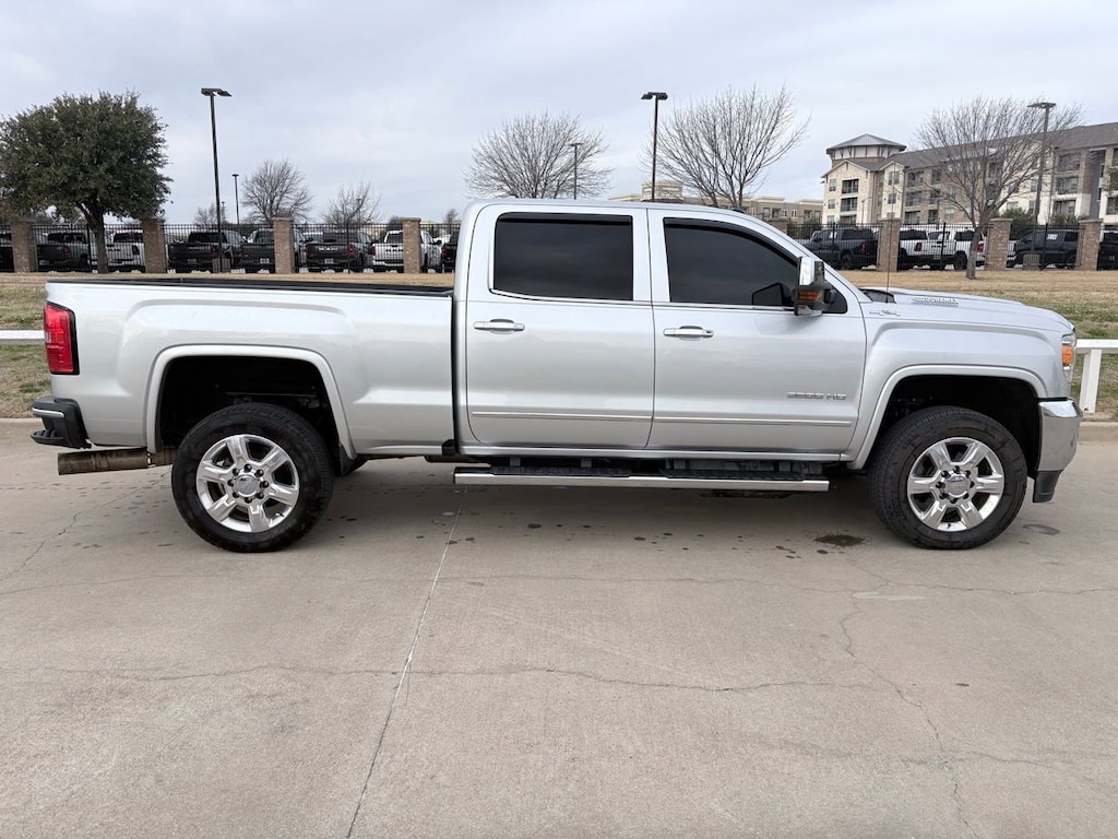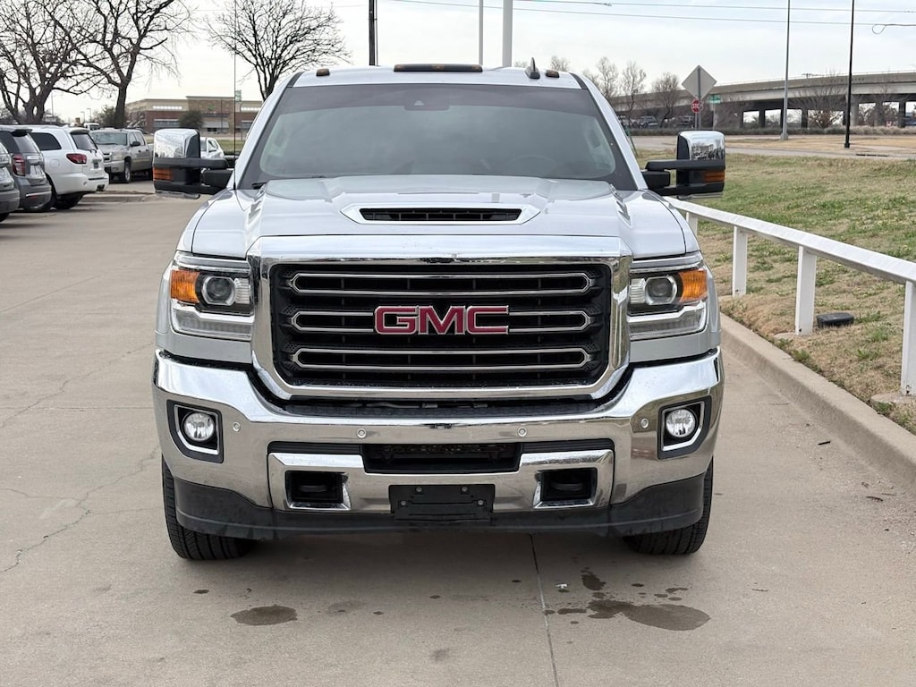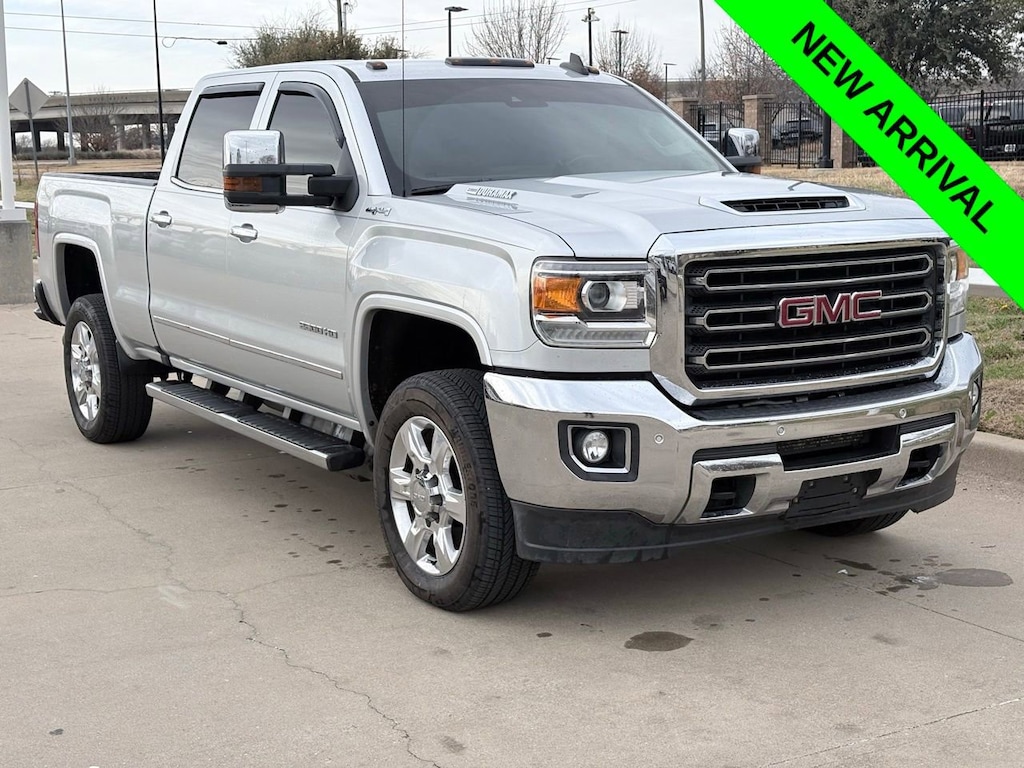 Experience the rugged power and refined comfort of the 2018 GMC Sierra 2500HD SLT. This used powerhouse, dressed in Quicksilver Metallic, is equipped with a robust Duramax 6.6L V8 Turbodiesel engine paired with an Allison 1000 6-Speed Automatic transmission, making it a formidable choice for any terrain. The four-wheel-drive capability ensures superior traction and control, while the locking/limited slip differential enhances handling on challenging surfaces. Safety is paramount with features like stability control, traction control, and integrated turn signal mirrors, providing peace of mind on every journey. The Sierra’s interior is designed for comfort and convenience, featuring heated leather seats with adjustable lumbar support and seat memory for personalized comfort. The back-up camera and Bluetooth connection add modern functionality, while the remote engine start and keyless entry offer effortless access. Whether towing heavy loads or cruising through city streets, the Sierra’s tow hitch and tow hooks make it a reliable partner. With the added luxury of a leather steering wheel and auto-dimming rearview mirror, this truck combines rugged capability with sophisticated style, making it the ideal choice for those who demand more from their vehicle.