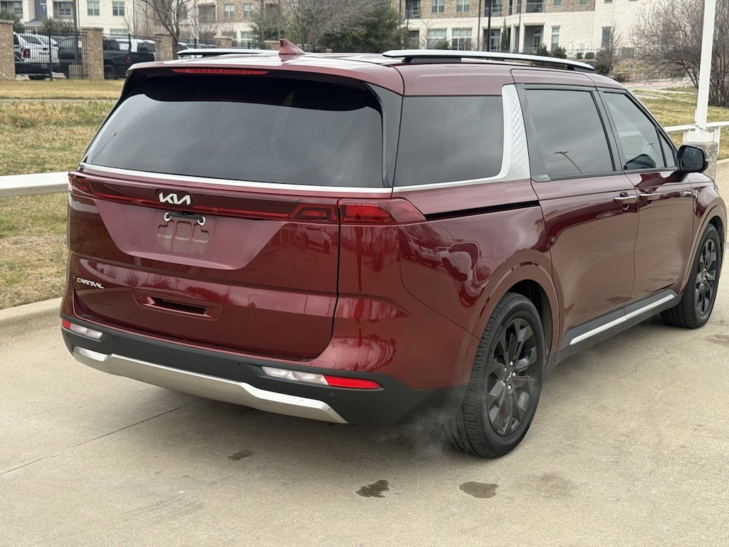 Step into the world of the 2023 Kia Carnival SX, the perfect blend of style, power, and practicality for those who seek more from their family vehicle. This used gem, with its striking Flare Red exterior, is designed for those who appreciate both aesthetics and functionality. Under the hood, the robust V6 engine paired with an 8-speed automatic transmission ensures a smooth and responsive drive, whether you're navigating city streets or hitting the open highway.