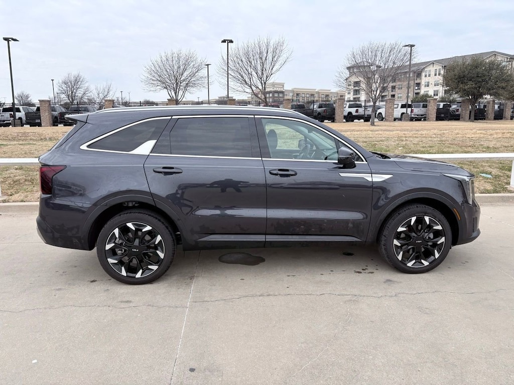 The hands-free liftgate and remote engine start add convenience to your daily routine, while the sleek aluminum wheels and rear spoiler enhance its sporty aesthetic. The 2025 Kia Sorento X-Line is more than just an SUV; it's your partner in adventure.